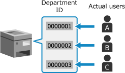 Assign Department IDs to users and groups according to usage environment and purpose. In addition, setting a PIN to a Department ID can prevent unauthorized access and enable stricter management.
