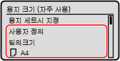 적재할 용지를 자주 변경해야 하는 경우 [임의크기]로 설정합니다. 이렇게 하면 매번 설정을 변경하는 데 필요한 단계 수가 감소합니다. 프린터 드라이버의 설정이 적재된 용지의 크기와 상당히 다른 경우 오류 메시지를 표시할 수도 있습니다.