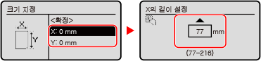 2 | [X]와 [Y]에 값을 입력하고 [확정]을 누릅니다. 자주 사용하는 비표준 크기를 등록한 경우 [S1]~[S3]을 눌러 해당 크기를 호출할 수 있습니다. |