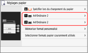 Sélectionnez le cassette à papier dont vous souhaitez modifier les paramètres.