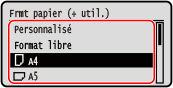 Appuyez sur [Autres formats], et sélectionnez le format de papier dans la liste affichée.