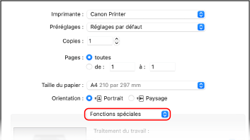 Dans le menu contextuel des options d'impression, sélectionnez [Fonctions spéciales].