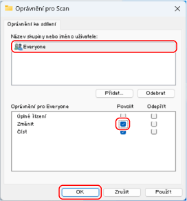 V položce [Uživatelé] vyberte možnost [Kdokoli]  [Čtení a zápis].