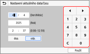 , můžete pro zadávání čísel použít také numerické klávesy.