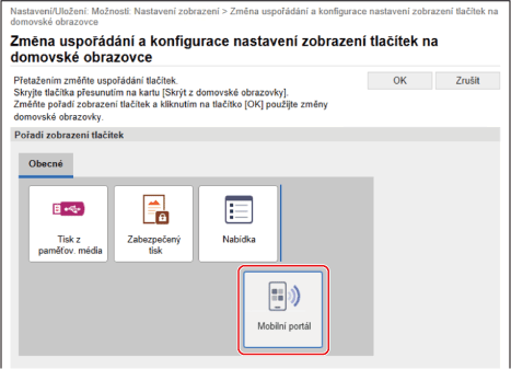 V položce [Změna uspořádání a konfigurace nastavení zobrazení tlačítek na domovské obrazovce] vyberte možnost [Upravit v zobrazení tlačítek] nebo [Upravit v zobrazení seznamu].
