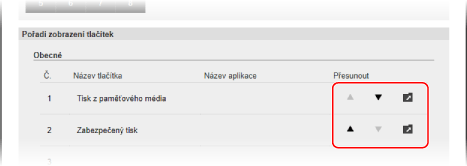 ] vedle názvu tlačítka, které chcete přesunout nahoru nebo dolů. Klikněte na [
