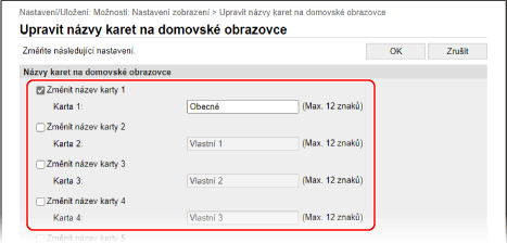 Přejmenujte karty pomocí Vzdáleného UR z počítače. K přejmenování karet nelze použít ovládací panel.