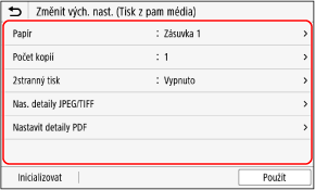 [Změnit výchozí nastavení (Tisk z paměťového média)].