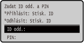 Když je nastaveno ID správce, zobrazí se přihlašovací obrazovka pro operace, které vyžadují oprávnění správce. Pro přihlášení zadejte ID a kód PIN správce.