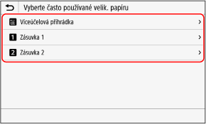 Zobrazí se obrazovka [Vyberte často používané velik. papíru].