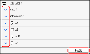 Zrušte zaškrtnutí políček velikostí papíru, které chcete skrýt, a klikněte na tlačítko [Použít].
