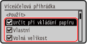 Velikosti papíru, jejichž políčka nejsou zaškrtnutá, se na obrazovce nastavení papíru nezobrazí.