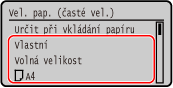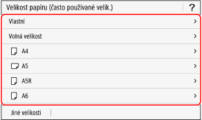 Velikost papíru zobrazenou na obrazovce v kroku 1 můžete změnit. Skrytí nepoužívaných formátů papíru