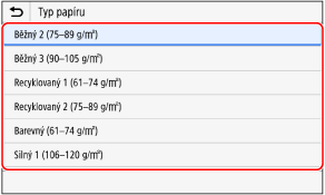 Pokud potřebujete vkládaný papír často měnit, vyberte možnost [Volná]; zjednodušíte tak postup, který se provádí při každé změně nastavení. Mějte však na paměti, že toto nastavení umožňuje zařízení tisknout, i když existuje nesoulad mezi nastavením typu papíru v ovladači tiskárny a typem papíru skutečně vloženým v zařízení.