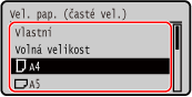 Vyberte velikost papíru vloženého v zásuvce na papír.