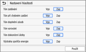 Nastavte, zda má zařízení vydávat zvuk po stisknutí tlačítek na ovládacím panelu.