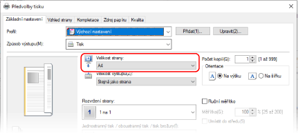 Zaškrtněte políčko [Přizpůsobit velikosti papíru] a v položce [Cílová velikost papíru] vyberte velikost papíru, na který se má tisknout.