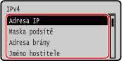 Nastavení IP adresy nastavené pro zařízení, jako je adresa IPv4 a adresa IPv6, je možné zobrazit.