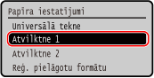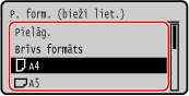 Atlasiet papīra atvilktnē ievietotā papīra formātu un nospiediet .