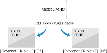Ja ir izvēlēts iestatījums [Jā], drukāšanas pozīcija tiek pārvietota uz nākamās rindiņas sākumu pēc tam, kad iekārta saņem LF kodu.