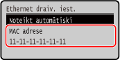 Ja iekārtai ir izveidots savienojums ar vadu LAN, varat skatīt iekārtai iestatīto MAC adresi.