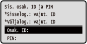 Kui on seatud administraatori ID, kuvatakse administraatori õigusi nõudvate toimingute korral sisselogimiskuva. Sisselogimiseks sisestage administraatori ID ja PIN.
