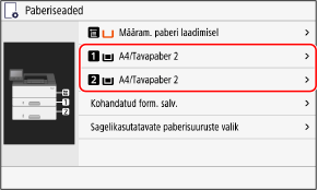 Vaikimisi on sahtlis paberi formaadi ja tüübi säteteks A4 ja Tavapaber 2. Kui panete sahtlisse erineva formaadiga või tüüpi paberit, muutke paberi sätteid.