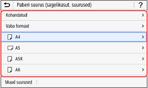 Vajutage [Muud suurused] ja valige paberi formaat kuvatavast loendist.