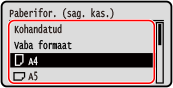 Valige paberisahtlisse asetatud paberi formaat.