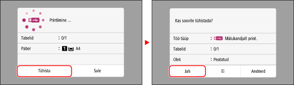 Sellisel juhul tühistage printimine seadme juhtpaneeli või rakenduse Remote UI (Kaugkasutajaliides)abil.