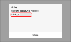 Kui traadita kohtvõrgu marsruuter toetab WPS PIN-koodi režiimi, saate luua ühenduse, kui registreerite seadme genereeritud PIN-koodi traadita kohtvõrgu marsruuterile. Registreerige PIN-kood arvuti kaudu.