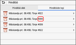 Kui ei saa printida, I-faksi saata või vastu võtta või tekib muu tõrge, kuvatakse tööde logis tõrkekood (kolmekohaline arv märgi # järel).
