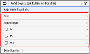 [Diğer Boyutlar] öğesine basın ve görüntülenen listeden kağıt boyutunu seçin.