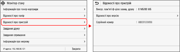 Торкнувшись імені елемента чи кнопки, можна вибрати елемент. Буде відображено вибраний екран або виконано вибрану функцію.