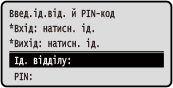 Якщо встановлено ідентифікатор адміністратора, екран входу в систему відображається для операцій, для яких потрібні права адміністратора. Введіть ідентифікатор і PIN-код адміністратора, щоб увійти.