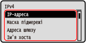 Можна переглянути параметри IP-адреси, установленої на апараті, як-от адресу IPv4 або IPv6.
