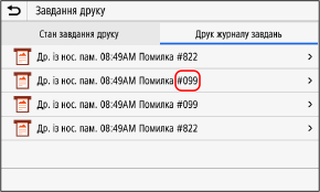 Якщо неможливо виконати друк або отримати інтернет-факс, а також у разі іншої помилки, у журналі завдань відображається код помилки (тризначний номер, який починається із символу «#»).