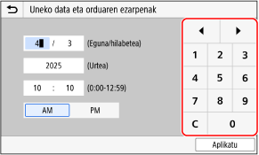 Teklatuaren edo zenbakizko teklen ordez [+] eta [-] edo kontrol irristagarria agertzen direnean, ukitu edo arrastatu horiek balioa ezartzeko. Ezarri balioa [+] eta [-] botoiak edo kontrol irristagarria erabiliz.