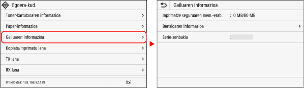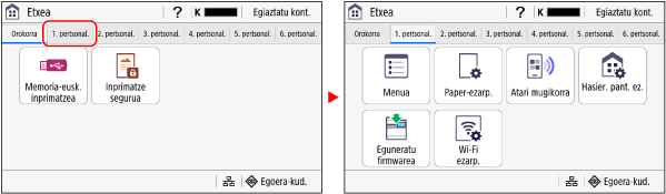 Elementu baten izena edo botoia ukitzean, elementua hauta dezakezu. Hautatutako pantaila bistaratzen da edo hautatutako eginbidea burutzen da.