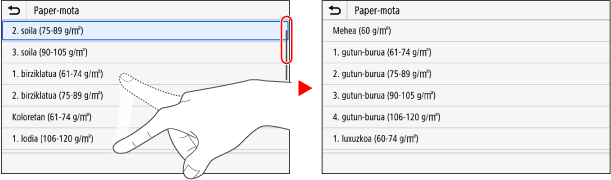 Mugitu atzamarra pantaila ukitzen duzun bitartean eta askatu nahi duzun posizioan. Horrela, zerrendak korritu eta ukitzen ari zaren eremua nahi duzun posiziora mugitu ahal izango duzu.