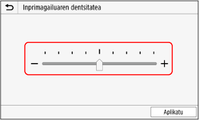 Ukitu [+] eta [-] botoiak balioa doitzeko. Kontrol irristagarria behean agertzen den moduan bistaratzen denean, ezkerrera edo eskuinera arrasta dezakezu balioa doitzeko.