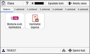 Makinaren memorian aldi baterako gordetako datuak inprimatzen ditu. PIN bidez babestutako dokumentu bat inprimatzea (Inprimatze segurua) |