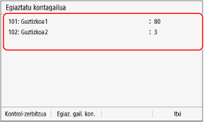 Kontrol-panelean, hautatu [Egiaztatu kontagailua] [Etxea] pantailan eta sakatu