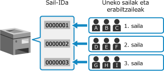 Esleitu sail IDak erabiltzaile eta taldeei erabilera-ingurunearen eta -helburuaren arabera. Gainera, sail ID batean PIN bat ezarriz gero, baimenik gabeko sarbidea saihestuko da, eta kudeaketa zorrotzago bat egingo.