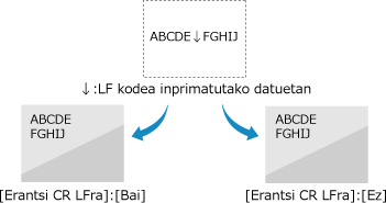 [Bai] hautatuz gero, inprimatze-posizioa hurrengo lerroaren hasierara mugituko da makinak LF kode bat jasotzen duenean.