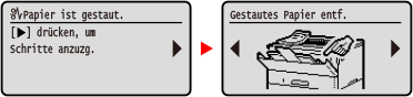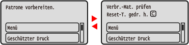 Wenn eine Meldung auf dem Bildschirm erscheint Wenn die Meldung zu lang ist, um sie auf einmal anzuzeigen, wird sie möglicherweise in kleinere Abschnitte unterteilt und abwechselnd angezeigt. ![]() |