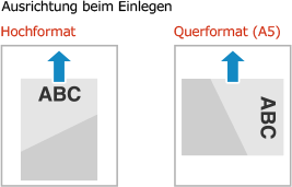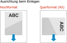 Standardmäßig unterscheiden sich Ausrichtung des einzulegenden Papiers und zu bedruckende Seite, je nachdem, ob Sie eine oder beide Seiten bedrucken möchten.