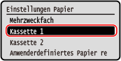 Wählen Sie die Papierkassette aus, deren Einstellung Sie ändern möchten, und drücken Sie