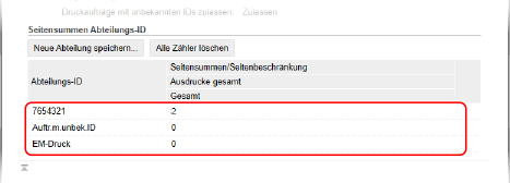 Sehen Sie sich unter [Seitensummen Abteilungs-ID] die Nutzung an.