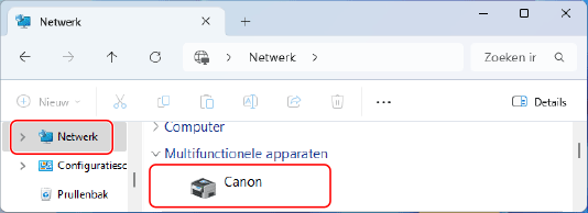 In [Netwerk] selecteert u de printserver om de gedeelde printer weer te geven.